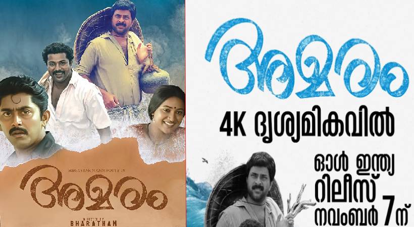 മലയാളികളുടെ ഇഷ്ട ചിത്രം അമരം 4 K ദൃശ്യമികവിൽ ഇന്ന് വീണ്ടും തീയേറ്ററുകളിൽ എത്തുകയാണ്. ഭരതൻ-ലോഹിതദാസ് കൂട്ടുകെട്ടിൽ പിറന്ന ‘അമരം വെറുമൊരു സിനിമയായിരുന്നില്ല, തീരദേശ ജനതയുടെ പരുക്കൻ യാഥാർത്ഥ്യങ്ങളെ വരച്ചു കാട്ടിയ ചിത്രമായിരുന്നു. 34 വർഷം മുൻപാണ് ചിത്രം അമരം ചെയ്തത്. അമരം തീയേറ്ററിൽ കാണാത്ത പുതു തലമുറയ്ക്ക് പുത്തൻ അനുഭവമാവും റീ റിലിസ്. എല്ല തീയറ്ററുകളിലും വിപുലമായ ആഘോഷ പരിപാടികളാണ് മമ്മൂട്ടി ഫാൻസ് ഒരുകിയിരിക്കുന്നത്. വനിതാ – വിനീത തീയേറ്ററിലാണ് രാവിലെ ഒൻപത് മണിയോടെ ആദ്യ ഷോ ആരംഭിക്കുക.