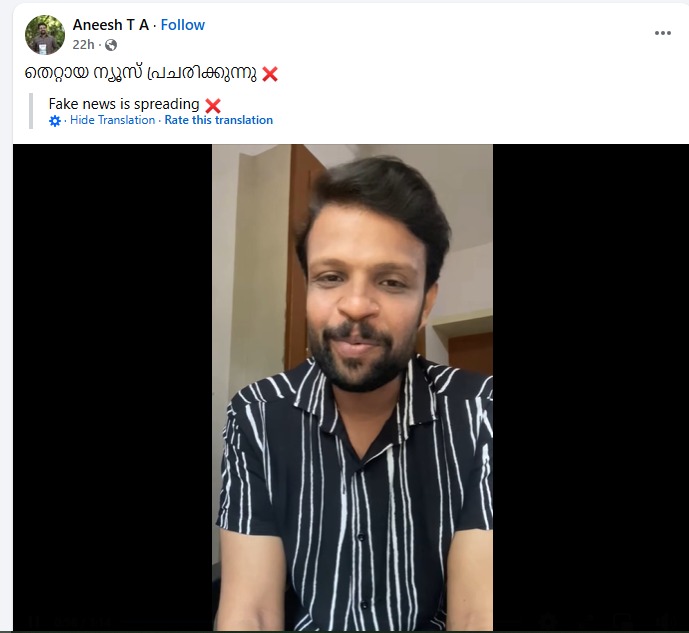 എന്നാൽ ഇന്നലെ അനീഷ് തന്നെ ഫേസ്ബുക്കിൽ ലൈവിൽ പറഞ്ഞത് ആ വാർത്ത ശരിയല്ല അങ്ങനെയൊരു സംഭവം ആരും തന്നോട് പറഞ്ഞിട്ടില്ല എന്നാണ്.