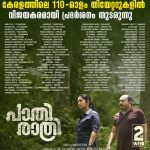 നവ്യ നായർ, സൗബിൻ ഷാഹിർ എന്നിവരെ കേന്ദ്ര കഥാപാത്രങ്ങളാക്കി റത്തീന സംവിധാനം ചെയ്ത “പാതിരാത്രി” തീയേറ്ററുകളിൽ മികച്ച വിജയം തുടരുന്നു. പ്രേക്ഷകരും നിരൂപകരും ഒരുപോലെ പ്രശംസ ചൊരിയുന്ന ഈ ചിത്രം രണ്ടാം വാരത്തിൽ കേരളത്തിലെ നൂറോളം സ്ക്രീനുകളിലാണ് വിജയകരമായി പ്രദർശനം തുടരുന്നത്. ബെൻസി പ്രൊഡക്ഷൻസിൻ്റെ ബാനറിൽ ഡോക്ടർ കെ വി അബ്ദുൾ നാസർ, ആഷിയ നാസർ എന്നിവർ ചേർന്നാണ് ഈ ക്രൈം ഡ്രാമ ത്രില്ലർ ചിത്രം നിർമ്മിച്ചത്. ചിത്രം വമ്പൻ റിലീസായി കേരളത്തിൽ വിതരണം ചെയ്തത് ഡ്രീം ബിഗ് ഫിലിംസ്. പ്രേക്ഷകരെ ആദ്യാവസാനം ത്രില്ലടിപ്പിക്കുന്ന ചിത്രത്തിന് എല്ലാത്തരം പ്രേക്ഷകരുടെയും പിന്തുണ ലഭിക്കുന്നുണ്ട്. മമ്മൂട്ടി നായകനായി എത്തിയ “പുഴു” എന്ന ചിത്രത്തിന് ശേഷം റത്തീന സംവിധാനം ചെയ്ത രണ്ടാമത്തെ ചിത്രമാണിത്.