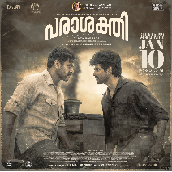 ശിവകാർത്തികേയൻ ചിത്രം പരാശക്തിയുടെ കേരളാ വിതരണാവകാശം ശ്രീ ഗോകുലം മൂവീസ് കരസ്ഥമാക്കി: ചിത്രം ജനുവരി 10ന് തിയേറ്ററുകളിലേക്ക്
