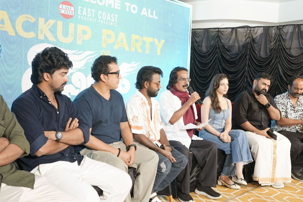 Palakkad: The filming of Bhishmar, directed by East Coast Vijayan and featuring Dhyan Srinivasan and Vishnu Unnikkrishnan in the lead roles, has been completed after a continuous 42-day schedule. Divya Pillai and Ammayra Goswami play the female leads. The pack-up party was celebrated on 1st October 2025 at Four N Square Hotel, Palakkad, with the participation of most of the artistes, technicians, and service providers.