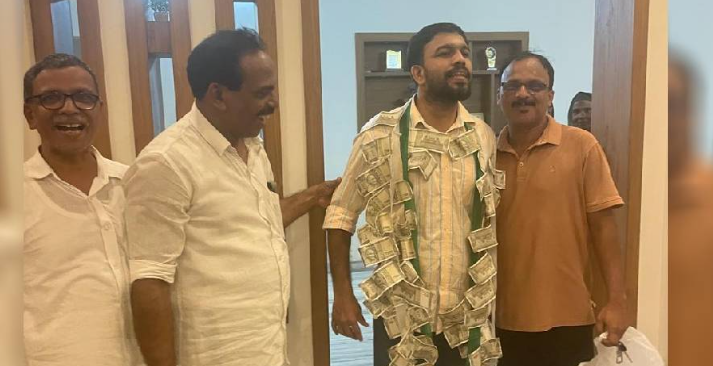 പേരാമ്പ്ര സംഘർഷം: ജാമ്യത്തിലിറങ്ങിയ പ്രതിയെ നോട്ടുമാലയിട്ട് സ്വീകരിച്ച് കോൺഗ്രസ് പ്രവർത്തകർ