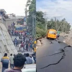 കൊല്ലത്ത് നിര്മാണത്തിലിരിക്കുന്ന ദേശീയപാത ഇടിഞ്ഞു താണു; റോഡില് വന് ഗര്ത്തം